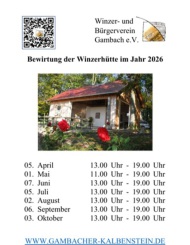 Wir haben unseren Winzer- und Bürgerverein Gambach e.V. am 26.05.2005 als gemeinnützigen Verein gegründet mit dem Ziel, die herrliche Terrassenlandschaft des Kalbensteins zu erhalten und auch für die Lebensqualität in Gambach selbst zu arbeiten.